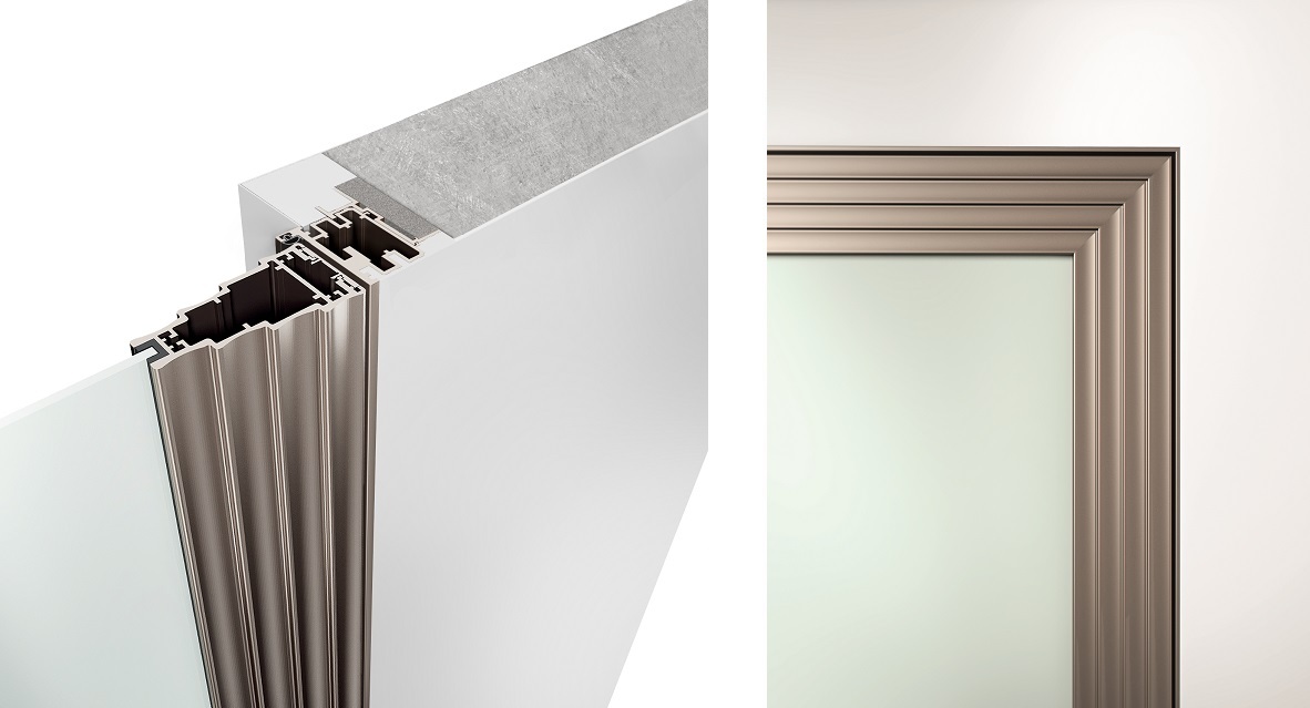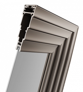 Полотно GLAMOUR, стекло Stopsol Grey, в скрытом коробе, алюминиевый профиль Black Bright.